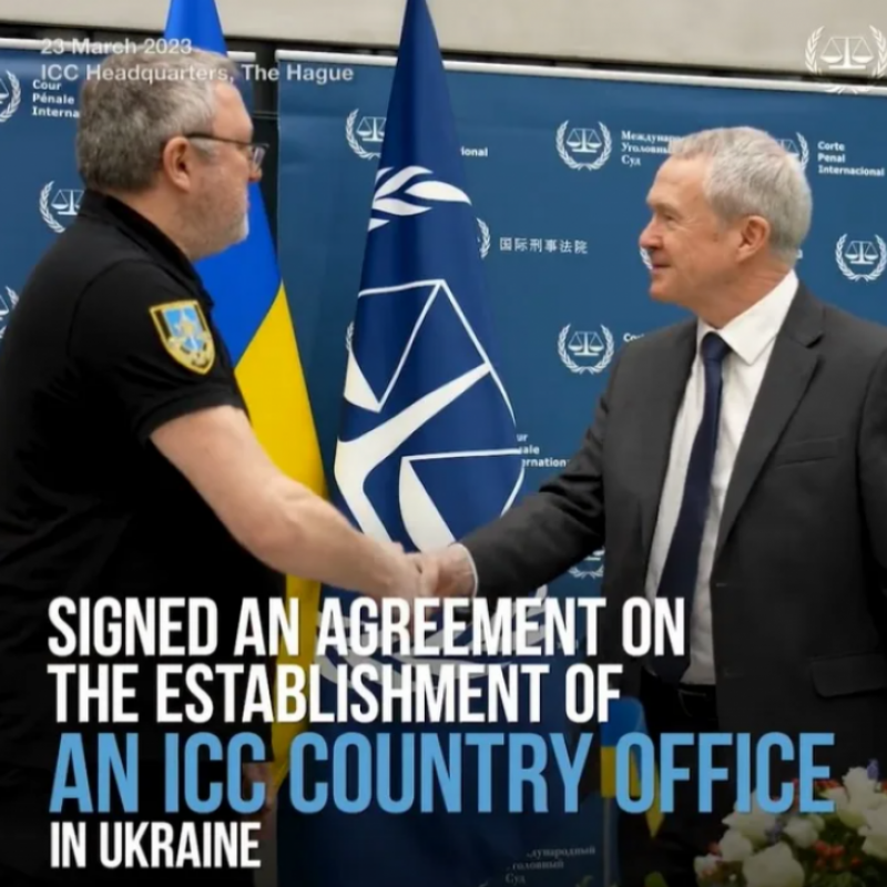 國際刑事法廷秘書長劉易斯(Peter Lewis)23日於海牙與烏克蘭檢察總長柯斯廷(Andrii Kostin)簽署協議,準備在烏克蘭開設國際刑事法院辦事處。